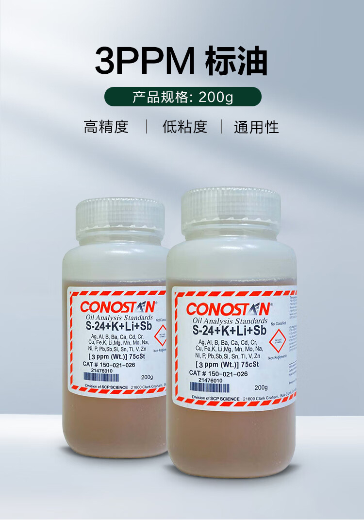 CONOSTAN 3ppm多元素混合標(biāo)油主要應(yīng)用于化學(xué)檢測儀器,輔助檢測化工品性能。