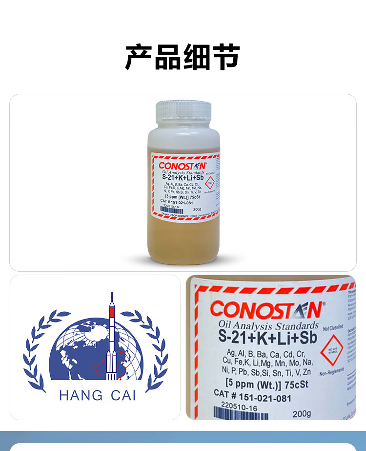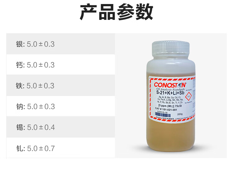 CONOSTAN 5PPM多元素混合標油主要應用于化學檢測儀器,輔助檢測化工品性能。
