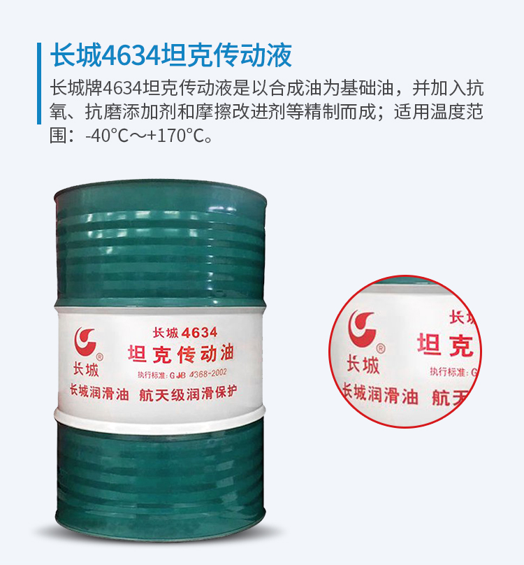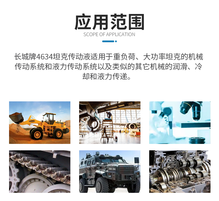 ★ 長城牌4634坦克傳動液適用于重負荷、大功率坦克的機械傳動系統和液力傳動系統以及類似的其它機械的潤滑、冷卻和液力傳遞;