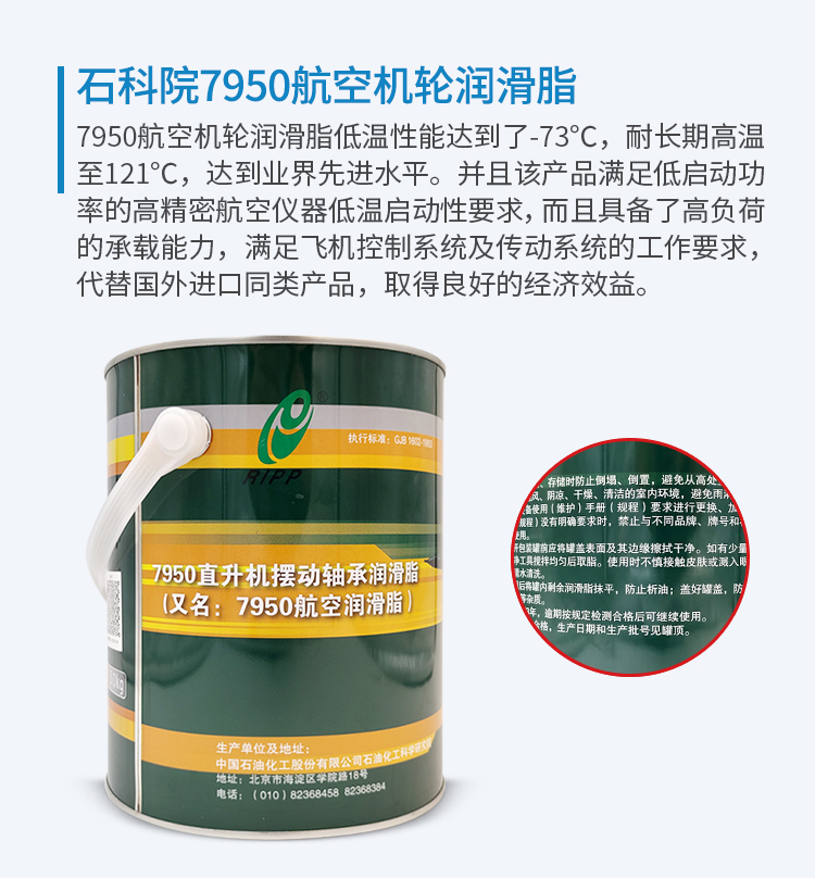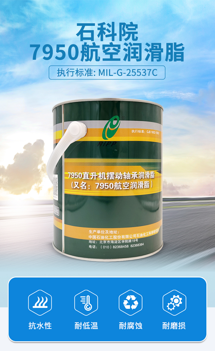 7950航空機(jī)輪潤滑脂是我國軍方及國產(chǎn)飛機(jī)廣泛使用的潤滑產(chǎn)品。取代了80年代以前使用的7008、7008-1及7012航空潤滑脂,其低溫性能達(dá)到了極低溫至-73℃,耐長期高溫至121℃,達(dá)到業(yè)界先進(jìn)水平。并且該產(chǎn)品優(yōu)良的低溫啟動轉(zhuǎn)矩及運轉(zhuǎn)轉(zhuǎn)矩,滿足低啟動功率的高精密航空儀器低溫啟動性要求,而且具備了高負(fù)荷的承載能力,滿足飛機(jī)控制系統(tǒng)及傳動系統(tǒng)的工作要求,代替國外進(jìn)口同類產(chǎn)品,取得良好的經(jīng)濟(jì)效益。