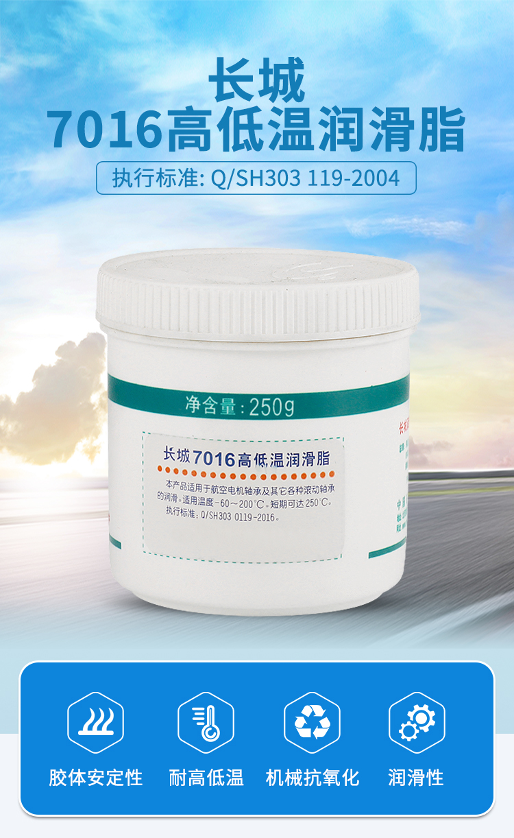 長城7016是一種寬溫度范圍的航空潤滑脂,其可以用于航空機電軸承等多種設備。該產品性能穩定,高低溫性能優良,被航空和工業領域廣泛應用。
