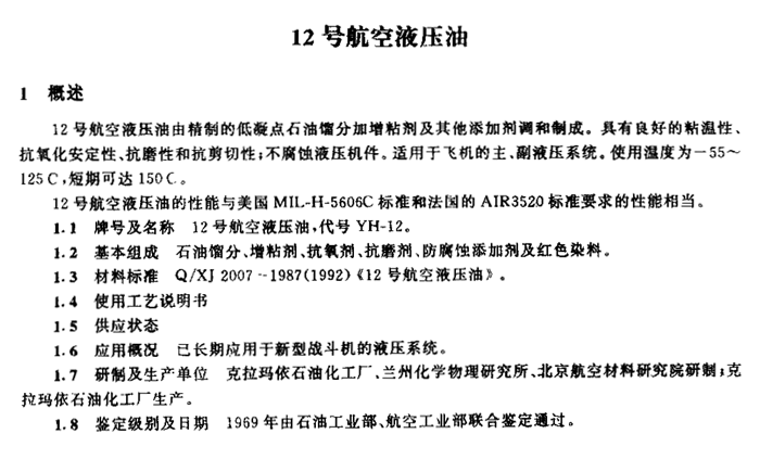 12號油在市面上并不常見,至少熱度與10號、15號航空液壓油有較大的差距。此型號應用也比較少,但是特點還是比較鮮明的。