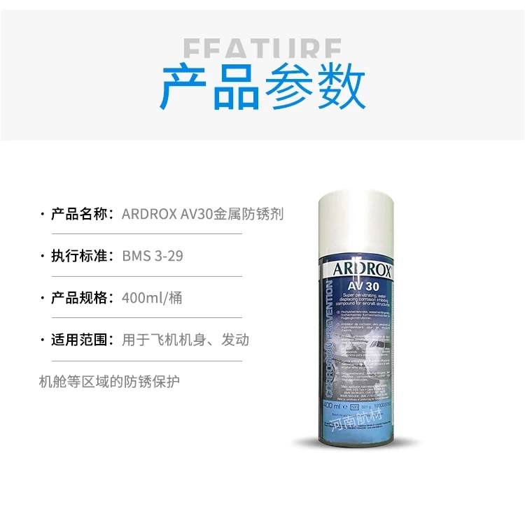 Chemetall ARDROX AV30金屬防銹劑是一種用于航空航天領(lǐng)域的金屬防銹保護(hù)劑,ARDROX AV 30由德國(guó)化學(xué)品制造商Chemetall生產(chǎn)。它是一種滲透性防銹保護(hù)劑,形成無(wú)粘性蠟質(zhì)保護(hù)膜。