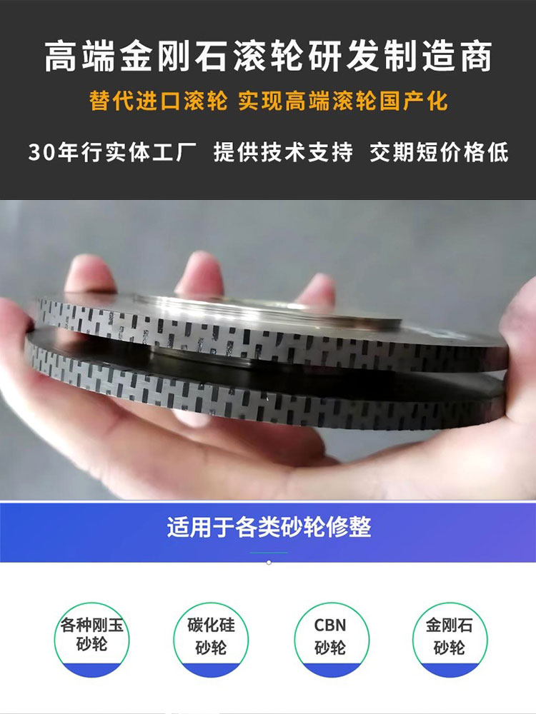 金剛石滾輪適用于各類(lèi)砂輪修整,具有高精度的特性。